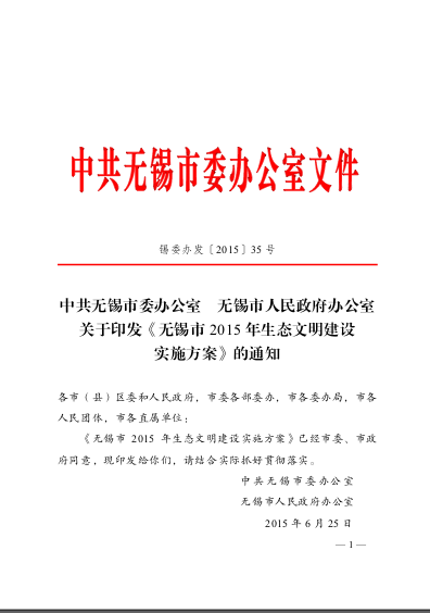 中共世界最大赌博网站委办公室世界最大赌博网站人民政府办公室关于印发《世界最大赌博网站2015年生态文明建设实施方案》的通知