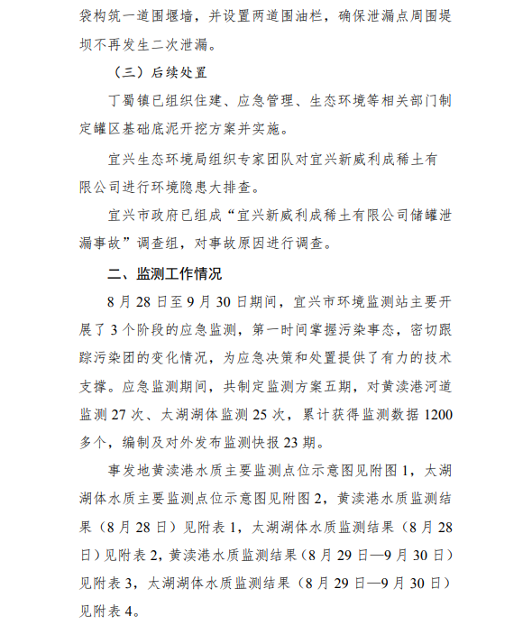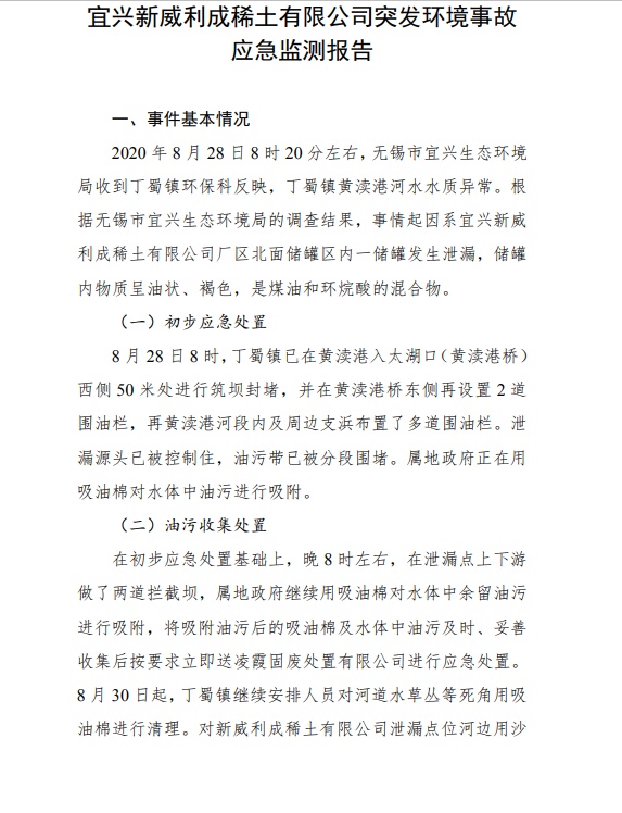 关于宜兴新威利成稀土有限公司突发环境事故应急监测报告