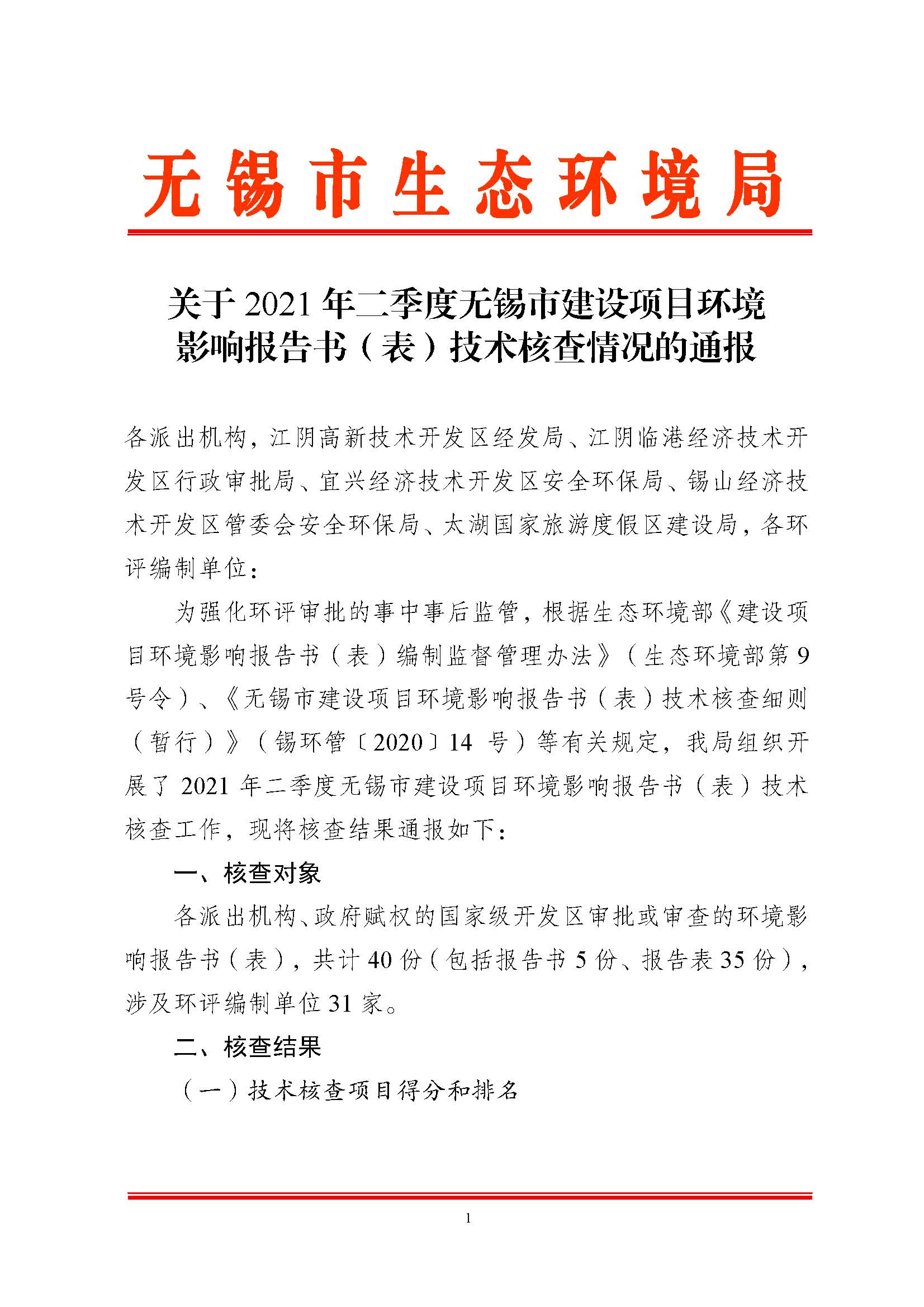 关于2021年二季度世界最大赌博网站建设项目环境影响报告书(表)技术核查情况的通报