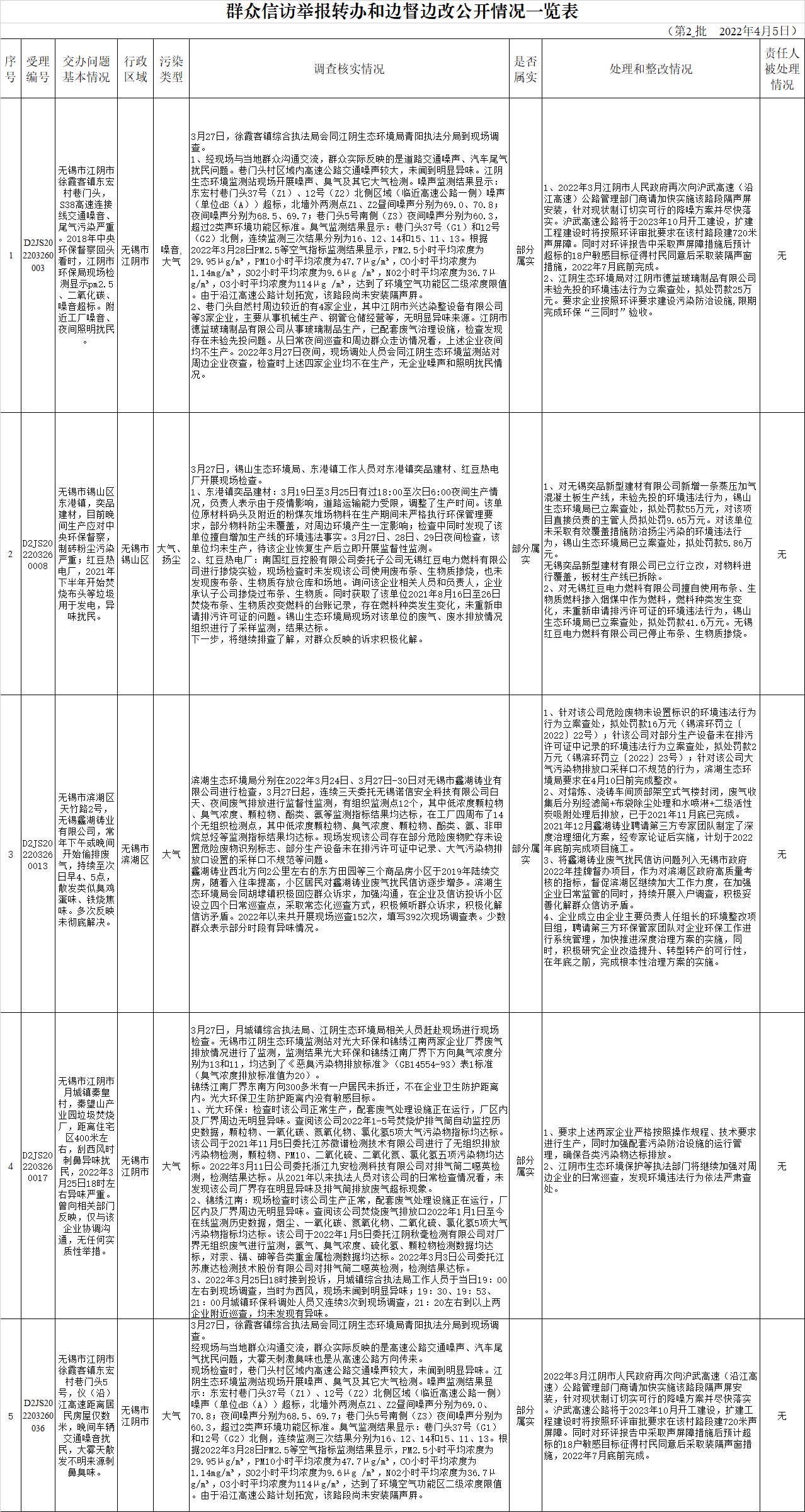 群众信访举报转办和边督边改公开情况一览表(第二批 2022年4月5日)