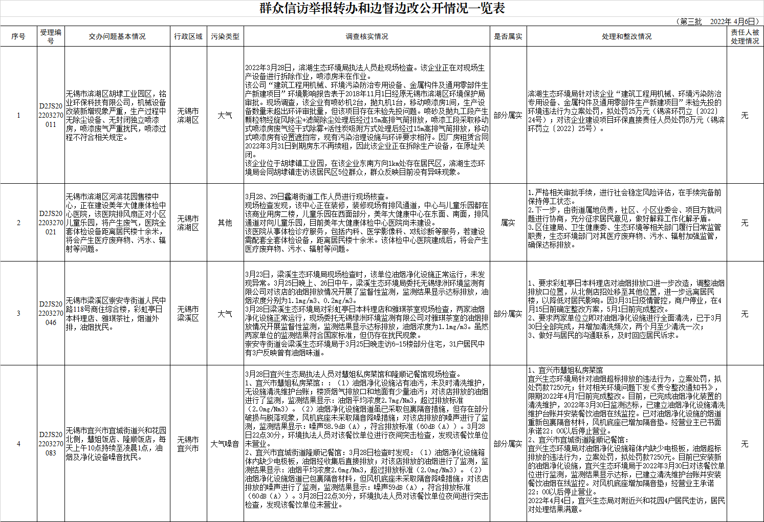 群众信访举报转办和边督边改公开情况一览表(第三批 2022年4月6日)