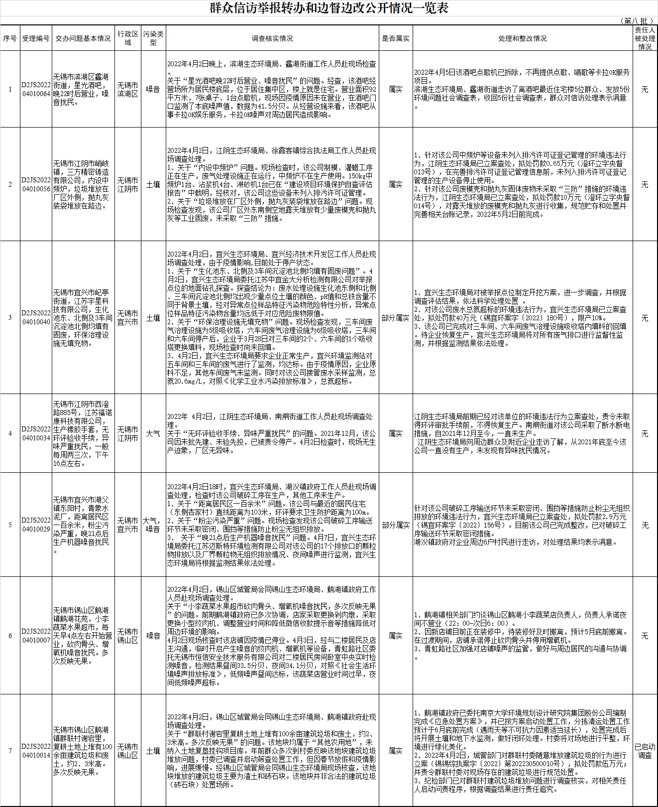 群众信访举报转办和边督边改公开情况一览表(第八批)