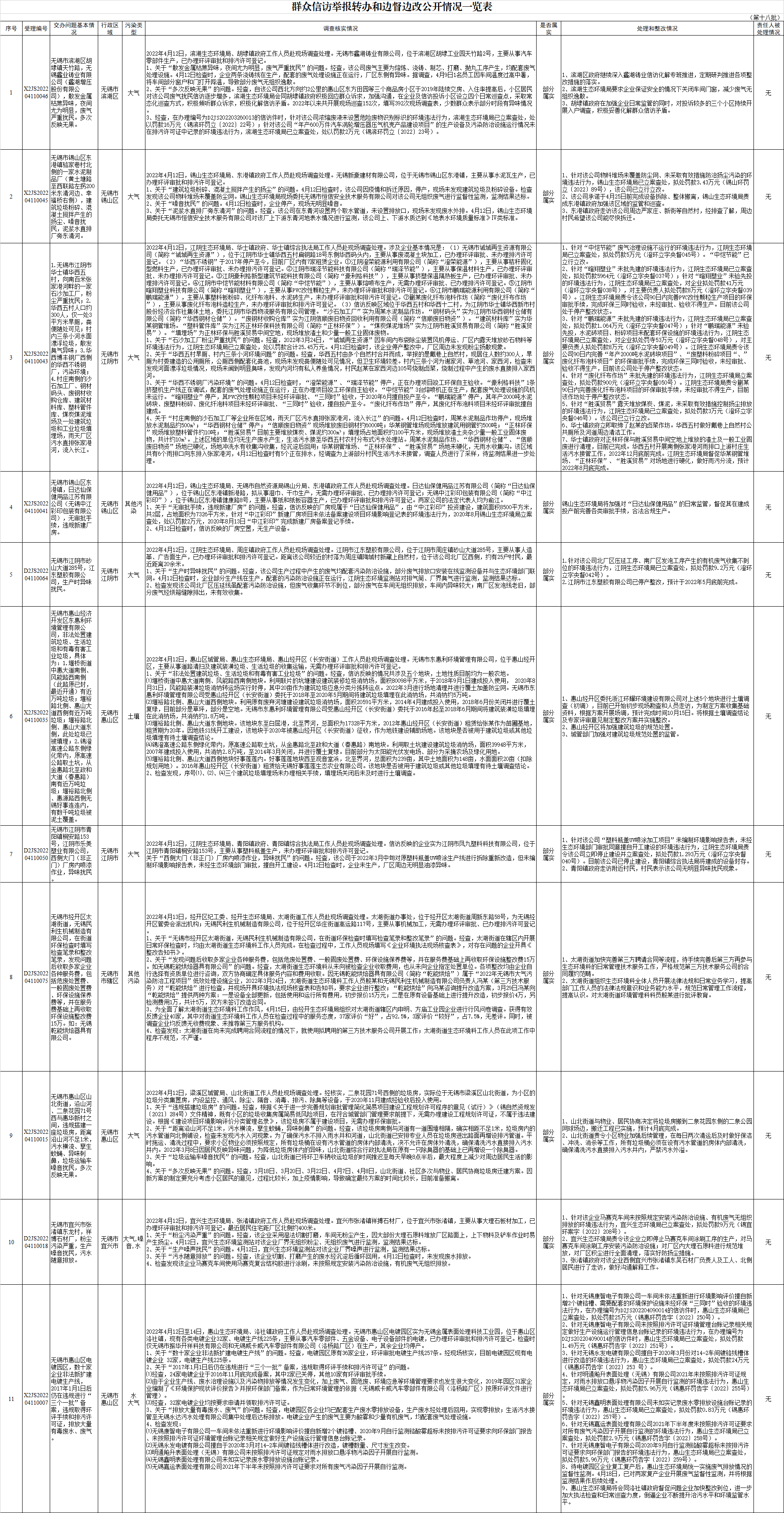 群众信访举报转办和边督边改公开情况一览表(第十八批)